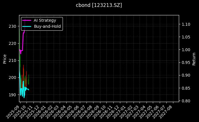 图表展示了策略净值与基准净值的走势对比,直观体现了AI策略在债券市场中的优异表现。